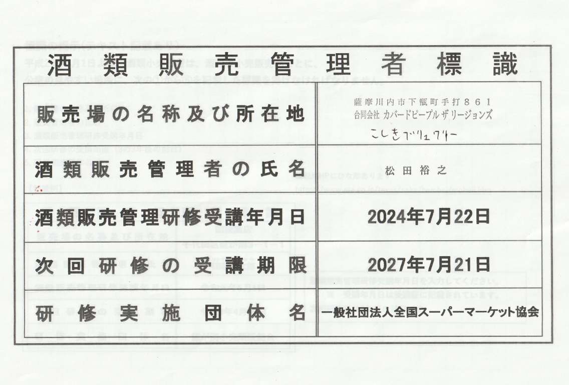 酒類販売管理研修受講者標識の掲示